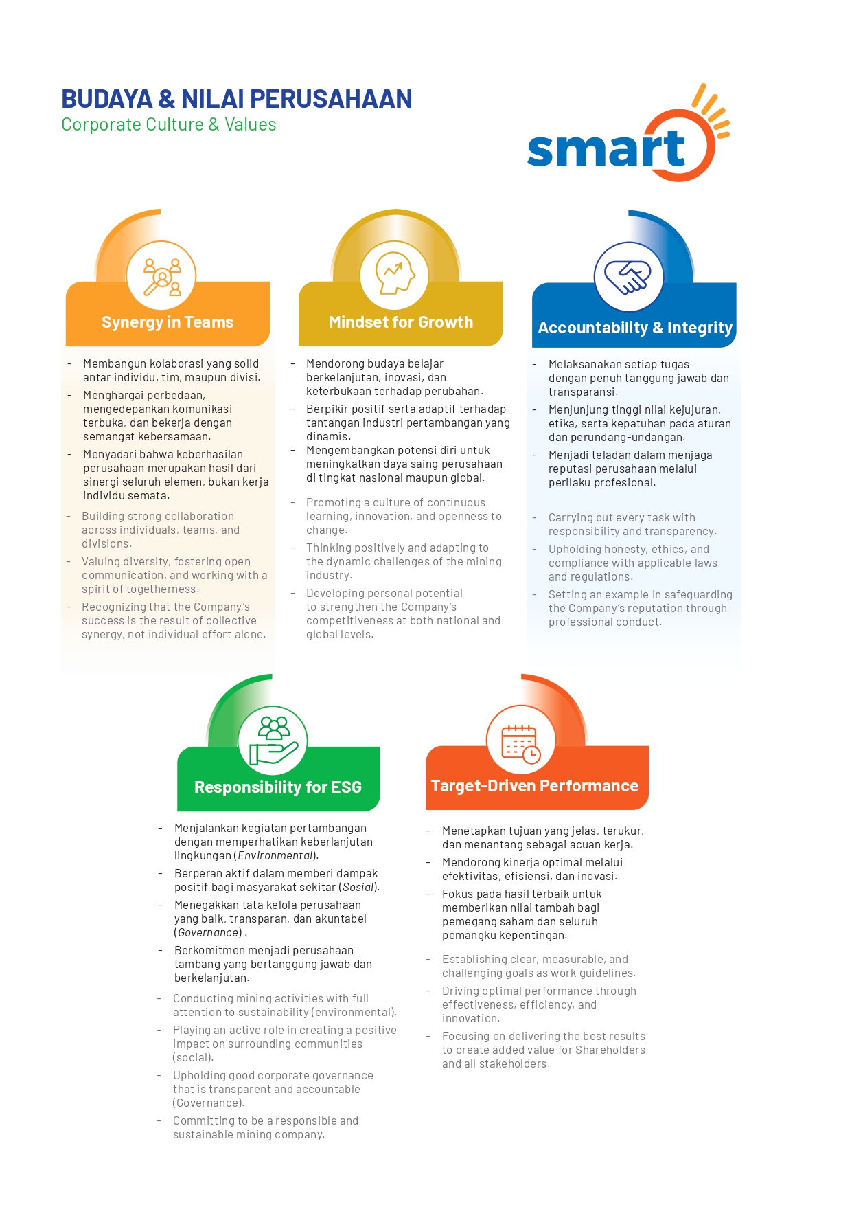 Komitmen jangka panjang perusahaan melakukan Good Mining Practice dalam menjalankan semua aspek pertambangan guna mencapai kegiatan pertambangan yang ramah lingkungan.